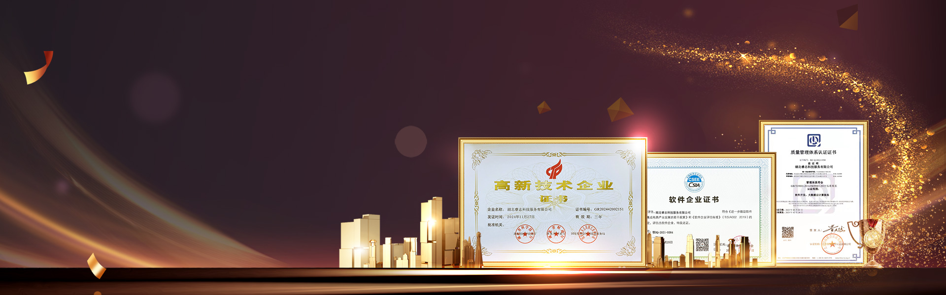 通過(guò)不斷的努力公司被認(rèn)定為“國(guó)家高新技術(shù)企業(yè)”、“雙軟認(rèn)證企業(yè)”、“科技型中小企業(yè)”、“IOS9001國(guó)家質(zhì)量管理體系認(rèn)證”,榮獲“雙十佳單位”、“信守承諾企業(yè)”、“湖北省軟件行業(yè)協(xié)會(huì)會(huì)員單位”、“十堰市中小企業(yè)協(xié)會(huì)副會(huì)長(zhǎng)單位”、“十堰數(shù)字經(jīng)濟(jì)產(chǎn)業(yè)聯(lián)盟副理事長(zhǎng)單位”等榮譽(yù)稱號(hào)。